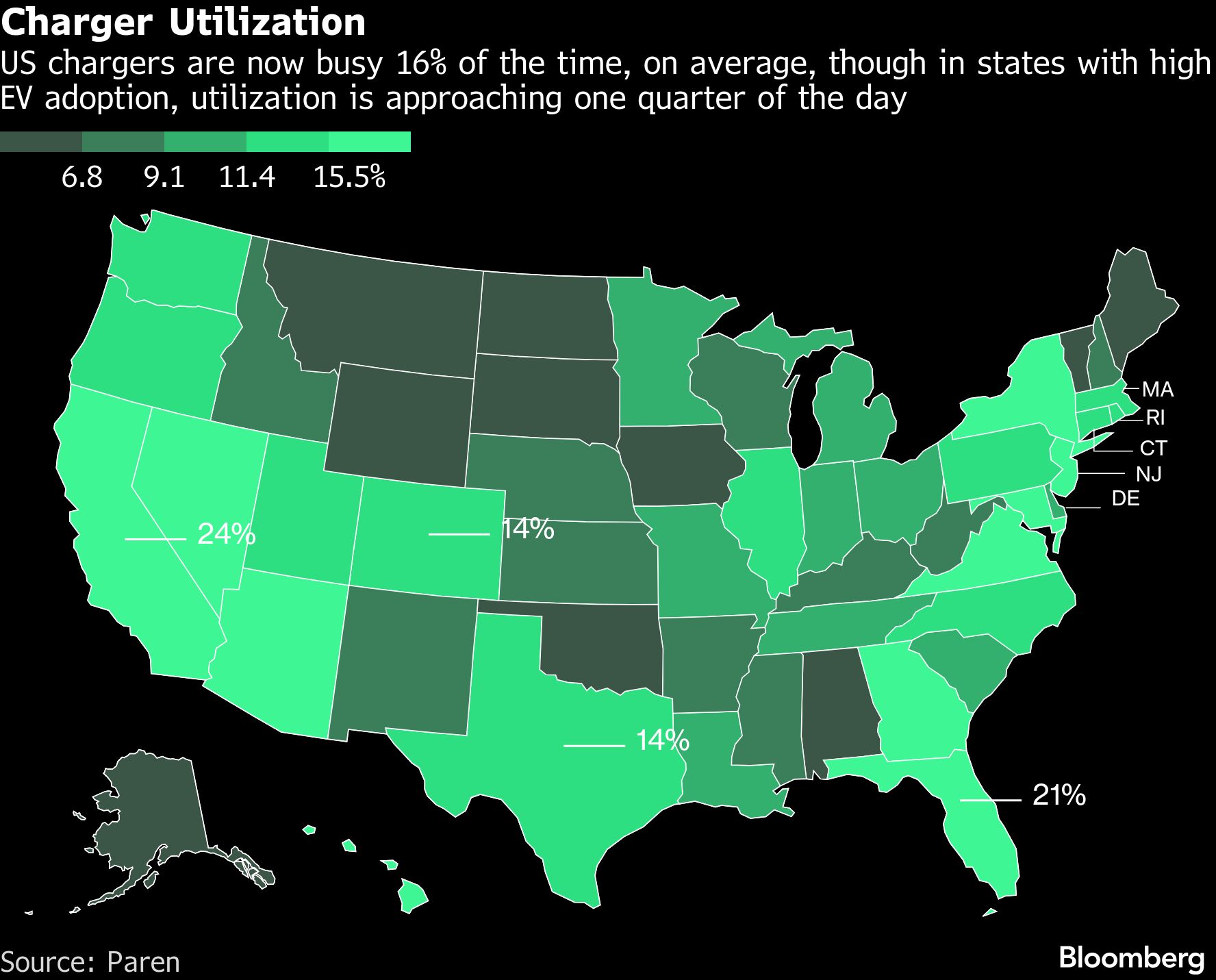 Paren expects the US to add slightly more chargers this year than last. “At some point, you would expect that the infrastructure would be growing so much that the utilization would go down,” said Bill Ferro, Paren co-founder and chief technology officer. “But we obviously aren’t there yet.”